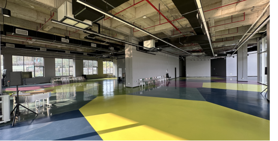 采用多種地坪漆拼色的做法,在金剛砂地面的基礎(chǔ)上完成創(chuàng)作,以植物常青藤的顏色作為設(shè)計(jì)靈感,用泰森多邊形的分割手法將地面分割成若干區(qū)域,在用不同顏色的地坪漆多次滾涂上色,成品堅(jiān)固耐磨,獨(dú)具特色。